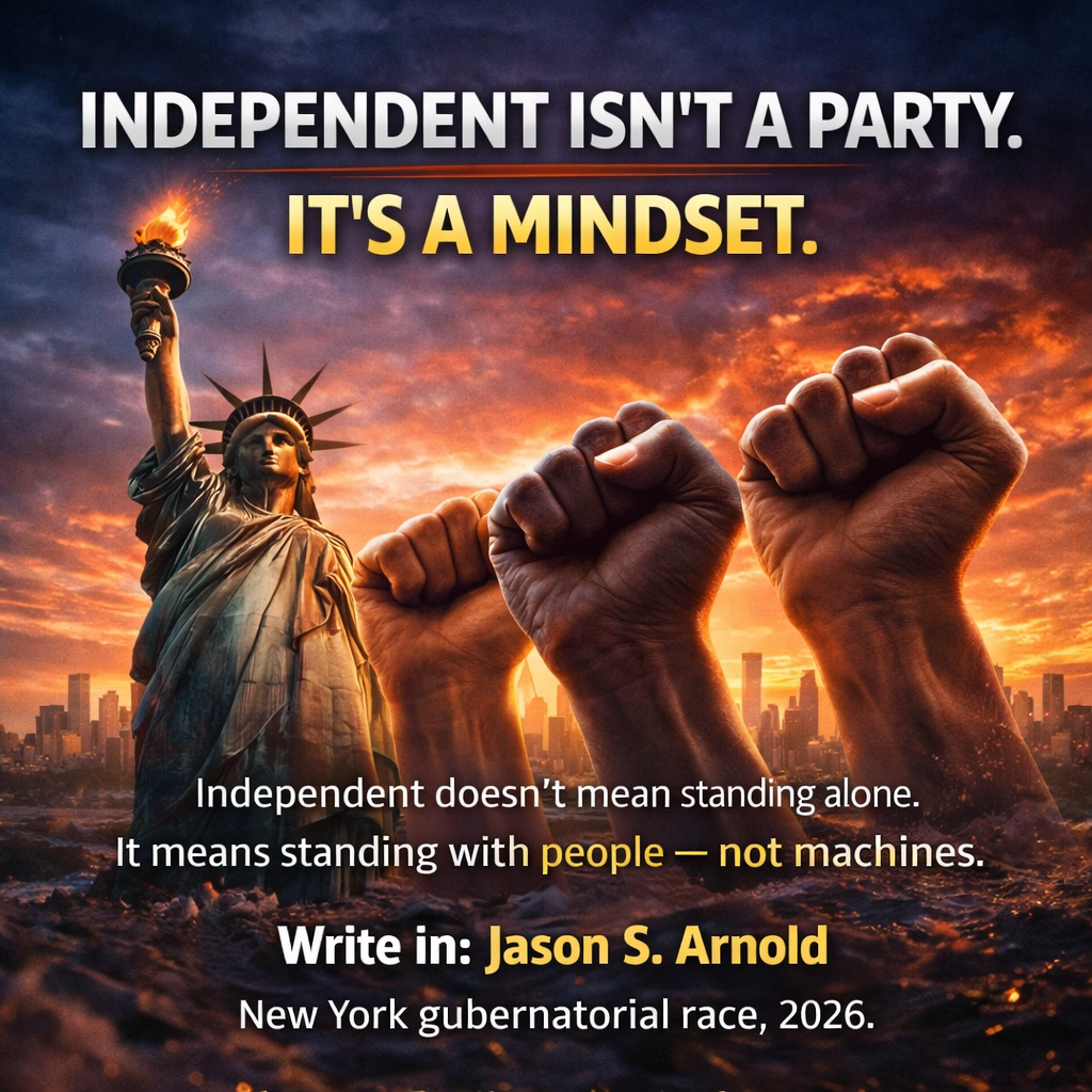 I’m not a good candidate, I’m the right one.WRITE THE NAME. CHANGE THE GAME. That’s not a slogan. That’s the strategy. For years, New Yorkers have been told the only choices are the ones printed on the ballot. But the truth is — the system already gives us another option. The write-in line isn’t decoration. It’s power. π³ When you write in a name, you bypass the party machine. π³ You bypass insider deals. π³ You bypass the idea that voters are stuck choosing the “less bad” option. You remind the state that the people still decide. This movement isn’t about fighting the system. It’s about using it. This election, New York has a choice: Accept what we’re handed… or write the name and change the game. Write in: Jason S. Arnold New York gubernatorial race, 2026. I’m not a good candidate, I’m the right one.0 Comments 0 Shares 225 Views 0 Reviews -