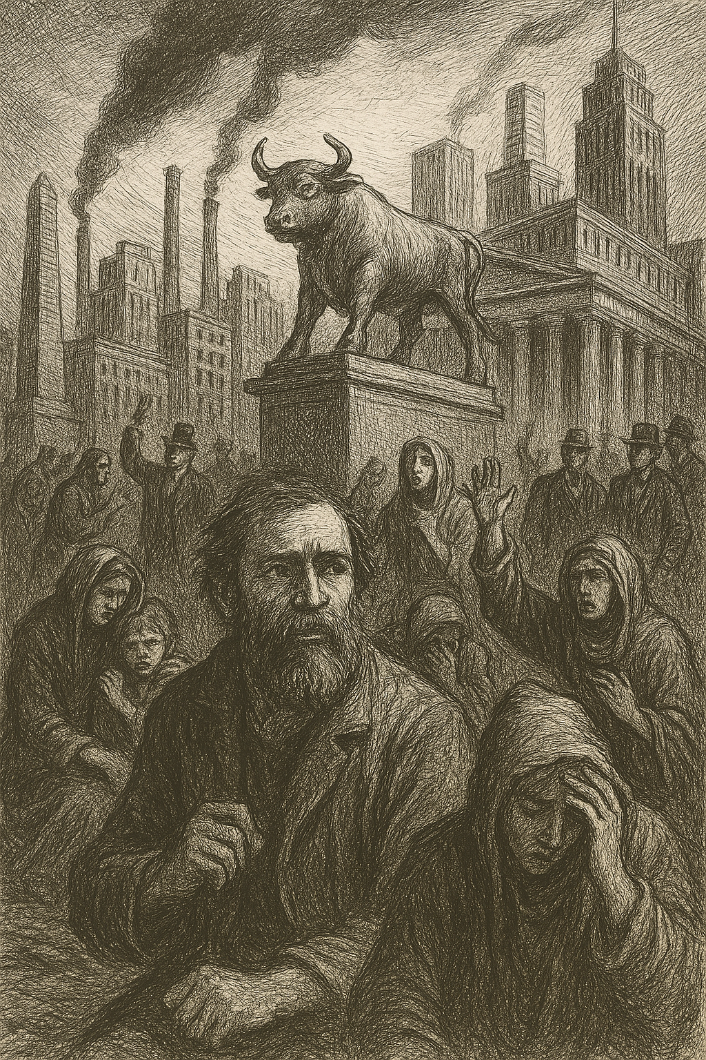 4. War was exalted as worship, and profit proclaimed itself as truth; the poor were forgotten, and the mighty wept only for their own loss.